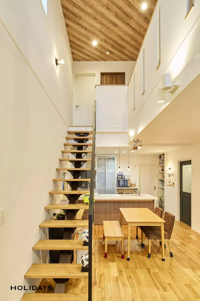 リビングイン階段は家族の存在を常に感じられるようにという想いから。