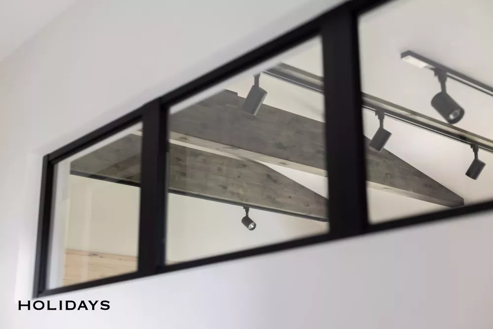 玄関とLDKの間には室内窓を設置。位置を高めにすることで来客からの視線を避けつつ、抜け感のある印象に。