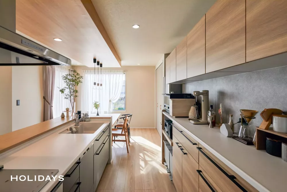 キッチン家電や小物も雰囲気に合うよう色味を統一。全体が調和した美しいキッチンとなった。