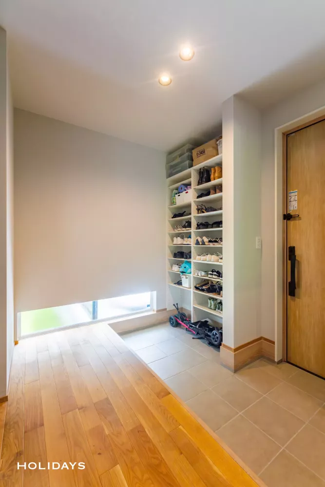 SICと玄関をあえて分けず、横並びの計画とすることで土間のスペースを広く活用した。