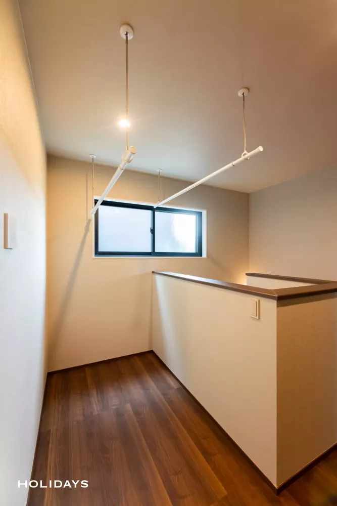 2階ホール部分にもサンルームを計画することで、大容量の洗濯物も宅内のみで干すことが可能。