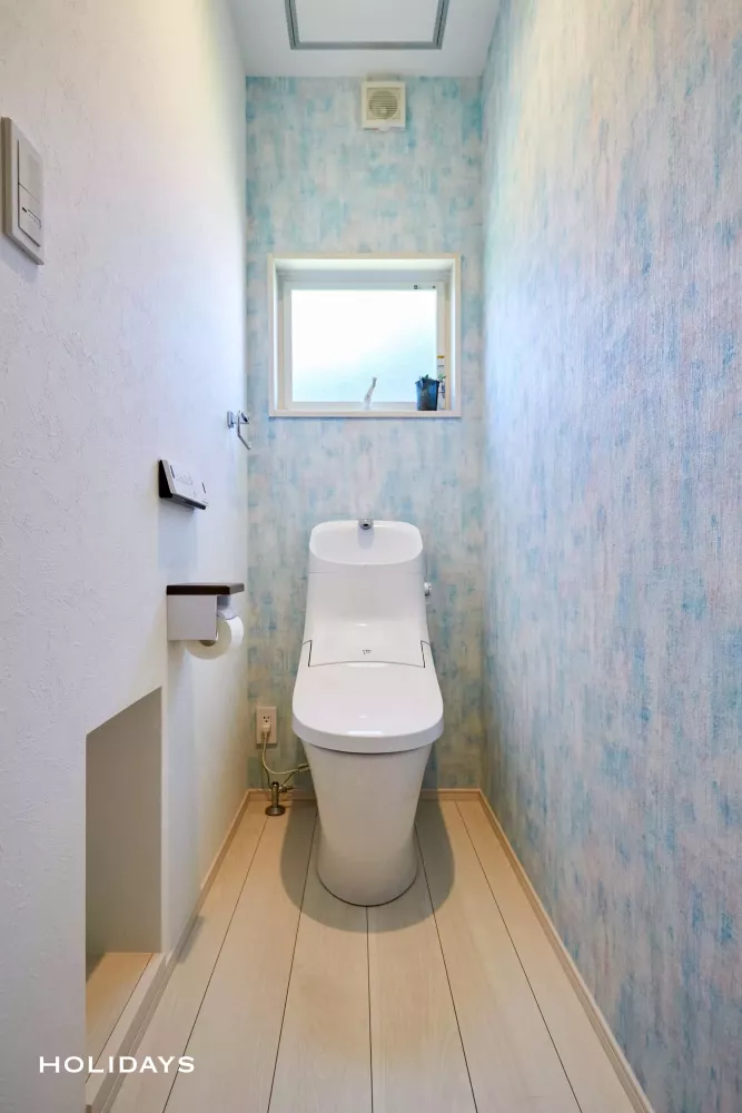 爽やかな印象を与えるアクセントクロスをあしらったトイレ