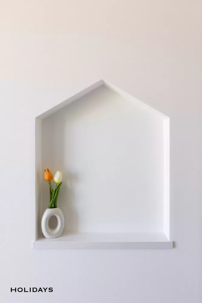 シューズクロークの反対側には山型のニッチを設計。ちょっとした小物を置くことができ、素敵なウェルカム空間になっている。