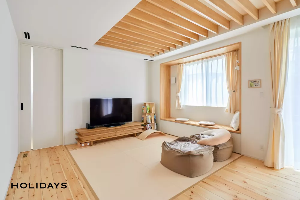 TV面には一部タタミスペースがあり、ごろんとお昼寝をしたりするのも気持ちのいいスペースになった。