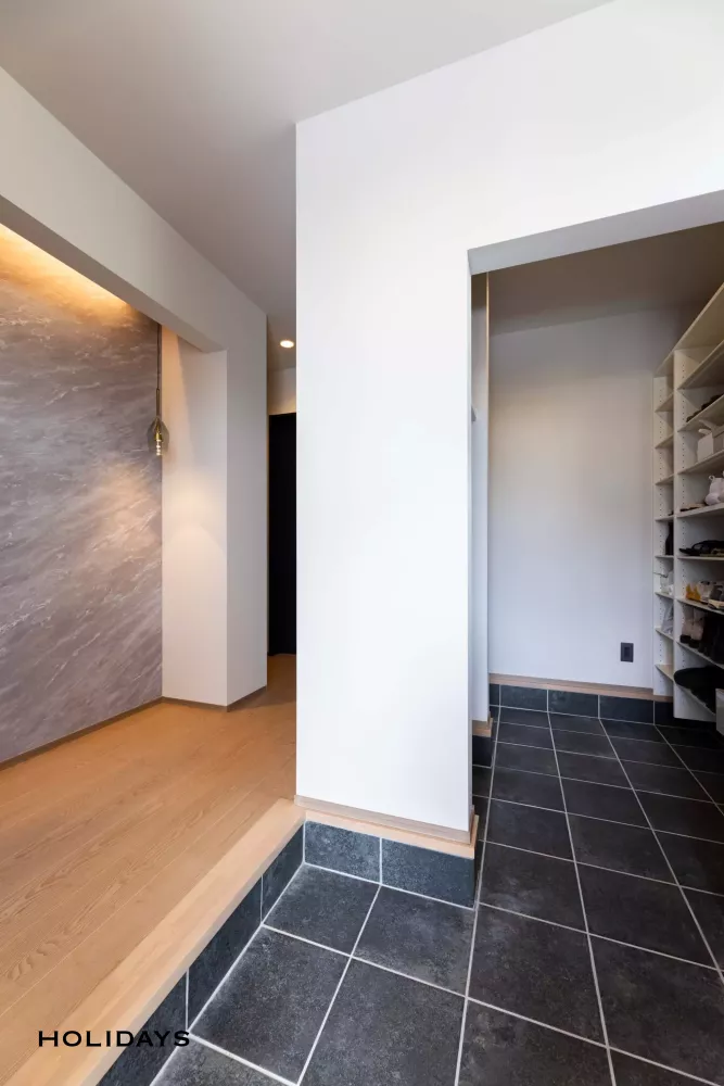 玄関入って正面に続くスペースにSICを設計。奥行き感をより感じられ、畳数以上の広さを感じられる広々とした玄関となった。