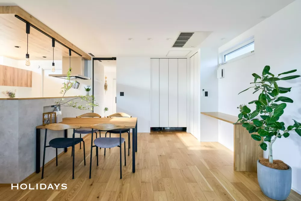 知人がHOLIDAYSで家を建てたこと、土地購入でお世話になったハウスボカンから紹介されたこと、スーモなどの情報誌→おしゃれな家を建てる工務店という印象。