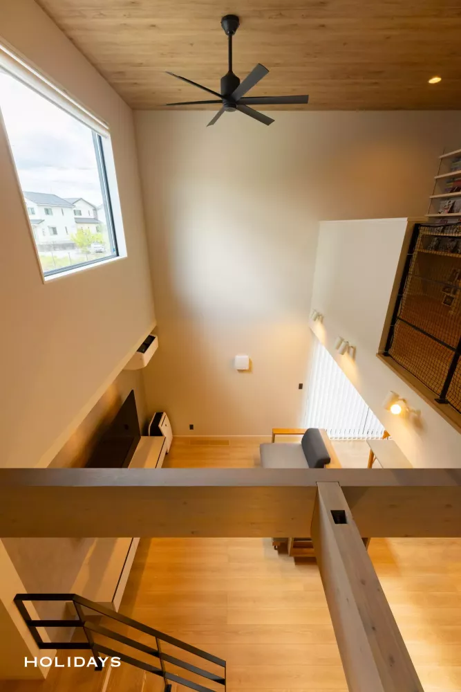 開放感のあるLDKが主役のお住まいが出来上がりました。リビング上部に大きめの吹き抜けを設けたのと、天井と同じ高さのハイサッシを設計したことで畳数以上の広さを感じられます。また、キッチンとランドリルーム、ファミリークローゼットをつなげた回遊動線もポイント。水回りスペースがつながっていることで、日々の家事負担が軽減されます。