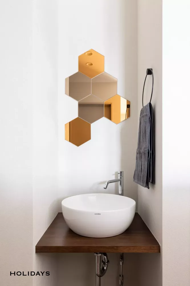 2階手洗い器は、サークル型のボウルを使用した造作洗面。コンパクトながら使い勝手は抜群。