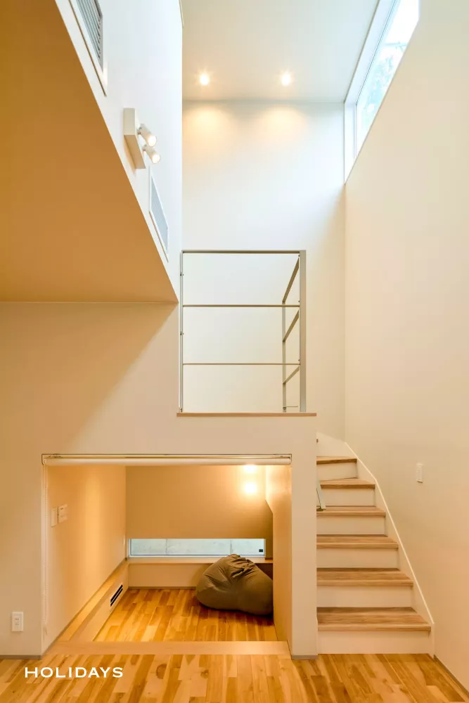 階段の途中にあるスキップフロアではお子様のお友達を呼んで遊べるようなスペースに。