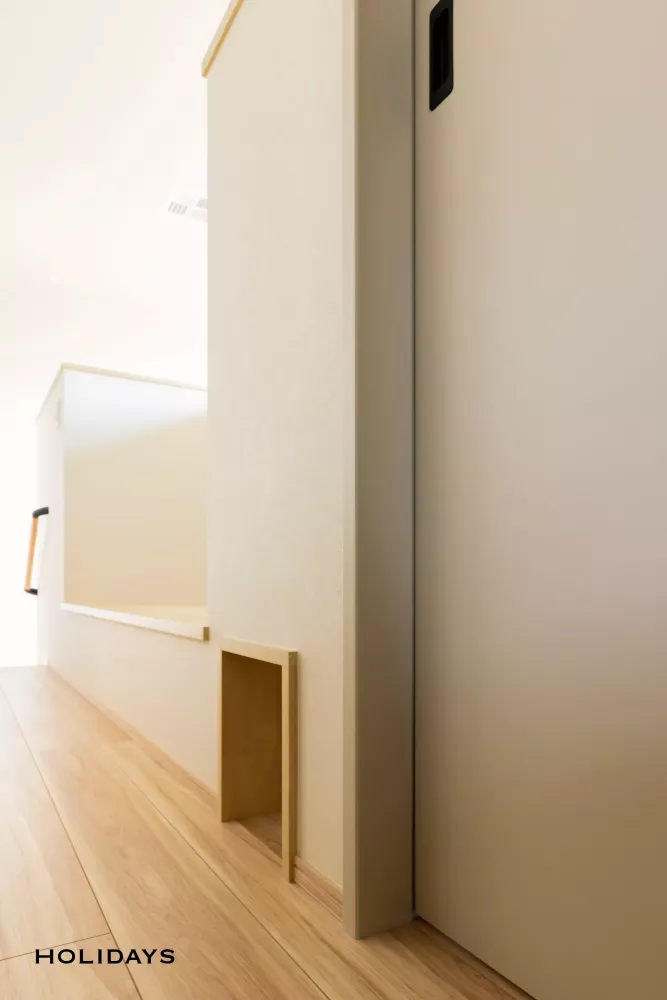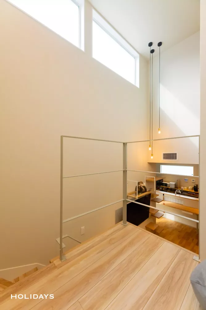 スキップフロアで秘密基地のような遊び心のある間取りが完成しました。またキャットウォールやカバ桜を使用した床など、猫ちゃんが快適に暮らしやすい設計にもこだわっています。