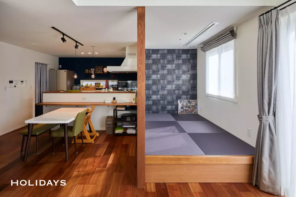 LDKには畳コーナーを併設。畳の下は収納スペースになっている