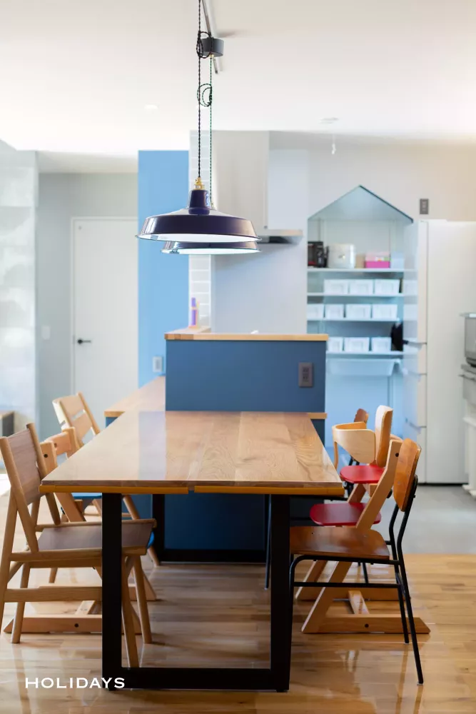 キッチンとダイニングは直線的に配置したことで、配膳が楽になった