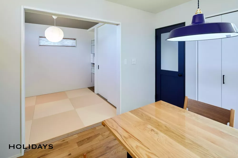 約23帖のLDKの隣には4.5帖の和室を併設。半畳タタミを採用しデザイン性も高い