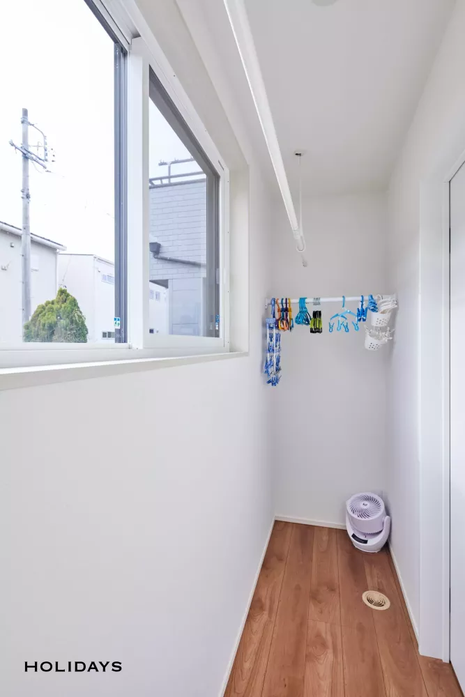 1階にはランドリールーム、ファイリークローゼット、サンルームが設計されており、洗濯→干す→畳む→収納するの一連の家事が1ヵ所で完結する