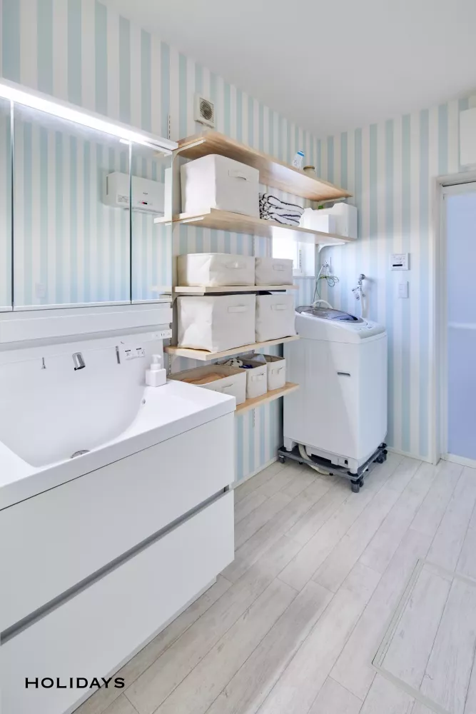 広々3帖の洗面所はかわいらしい印象に仕上げた