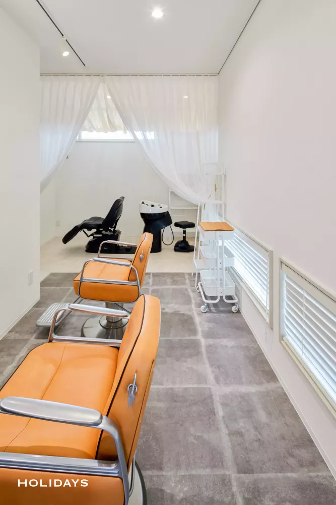 長方形を二つ重ねたようなお洒落な外観は存在感があり、見た目から美容室のセンスの高さを感じさせる。