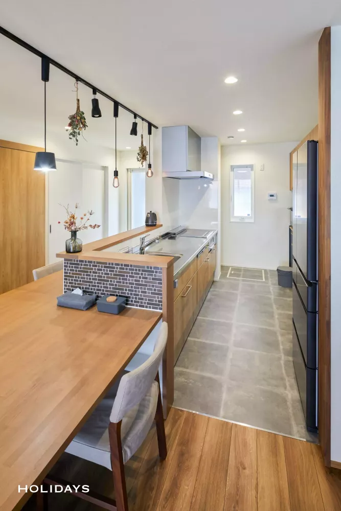 トレンドカラーのグレーを取り入れたお洒落なキッチンダイニング
