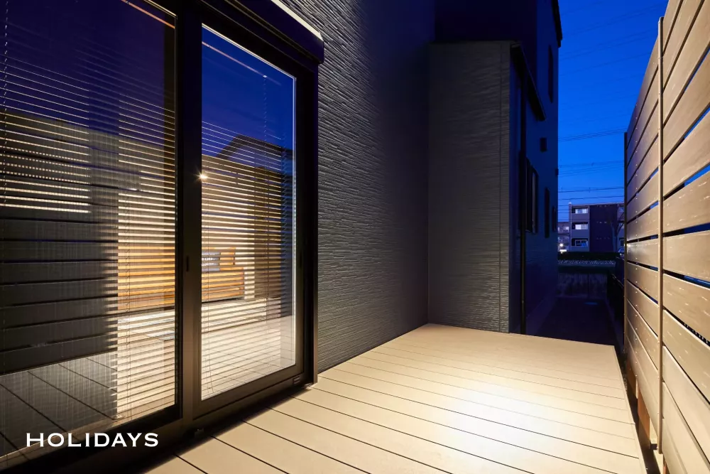 オシャレなウッドフェンスがあることにより、外からの視線も気にせずくつろげる