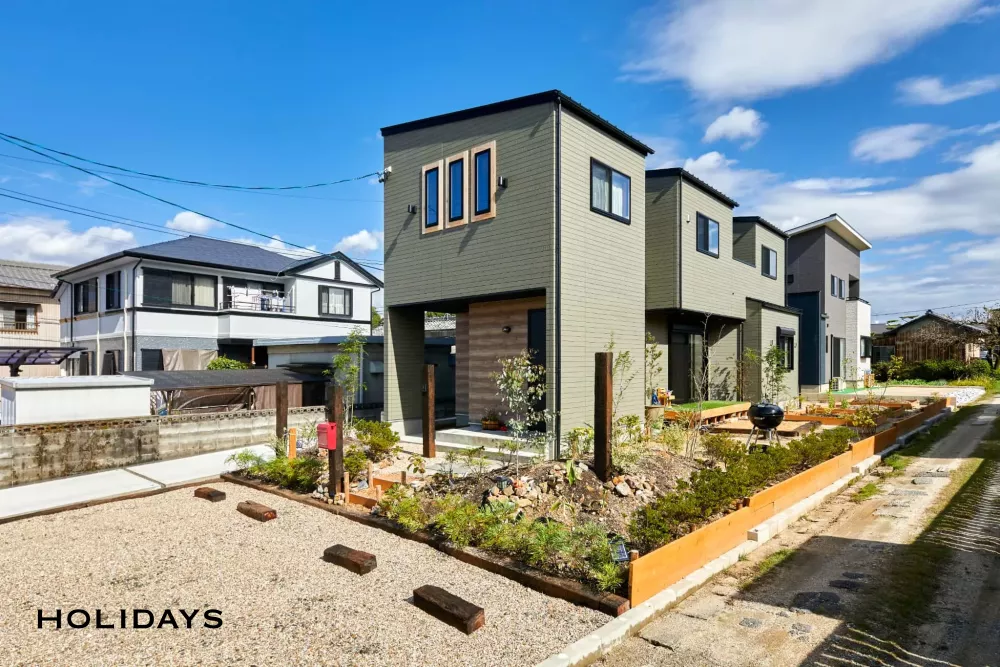 建物の南側には広々としたお庭スペースを確保し、趣味のガーデニングや家庭菜園が楽しめる仕上がりに。