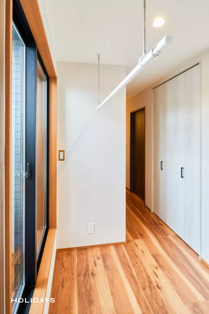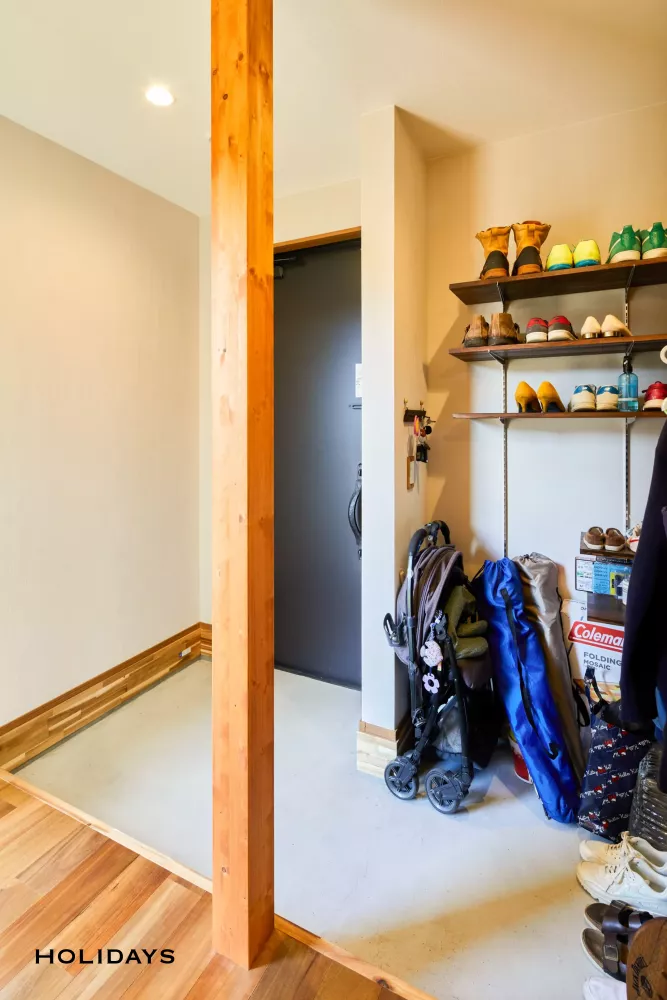 玄関には3帖分の収納スペースを用意。アウトドア好きな施主様のグッズもまとめて置いておける