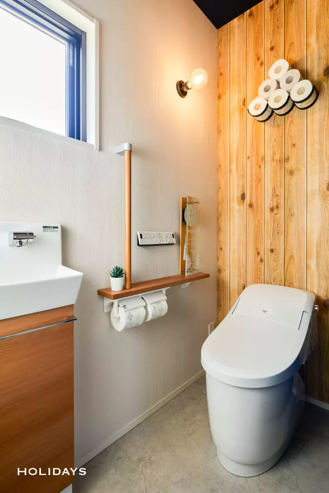 トイレの壁にも木材を使用し、温もりを感じられるスペースに