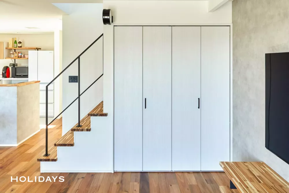 階段下スペースを利用して、いつでもスッキリとしたリビングを保てる