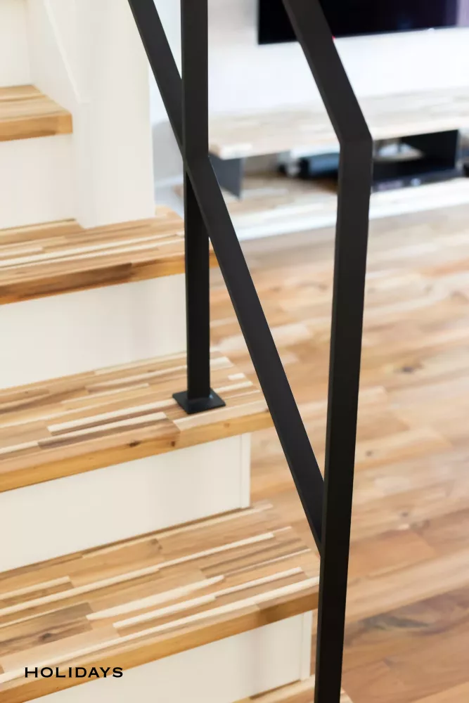 リビングイン階段には、アイアン手すりを取り付け、可愛らしさと大人っぽさを両立