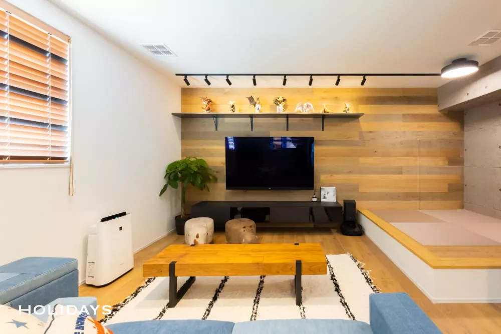 リビングに続く小上がりの畳コーナー。リビングとの一体感をもたせながらも、独立した空間としても使えるスペースとなっている