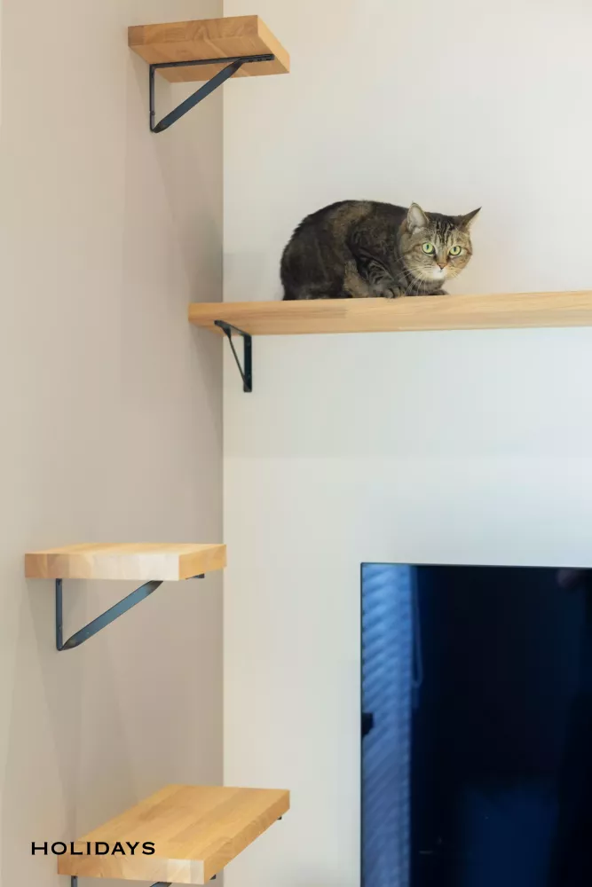 さまざまな高さの板が取り付けられ、愛猫の格好の遊び場に。