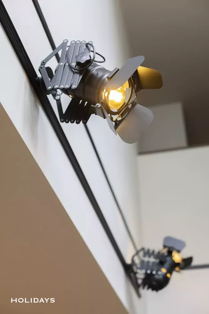 化粧梁にダクトレールを設置し、夜はスポットライトからの光で大人っぽい落ち着いた空間を演出する