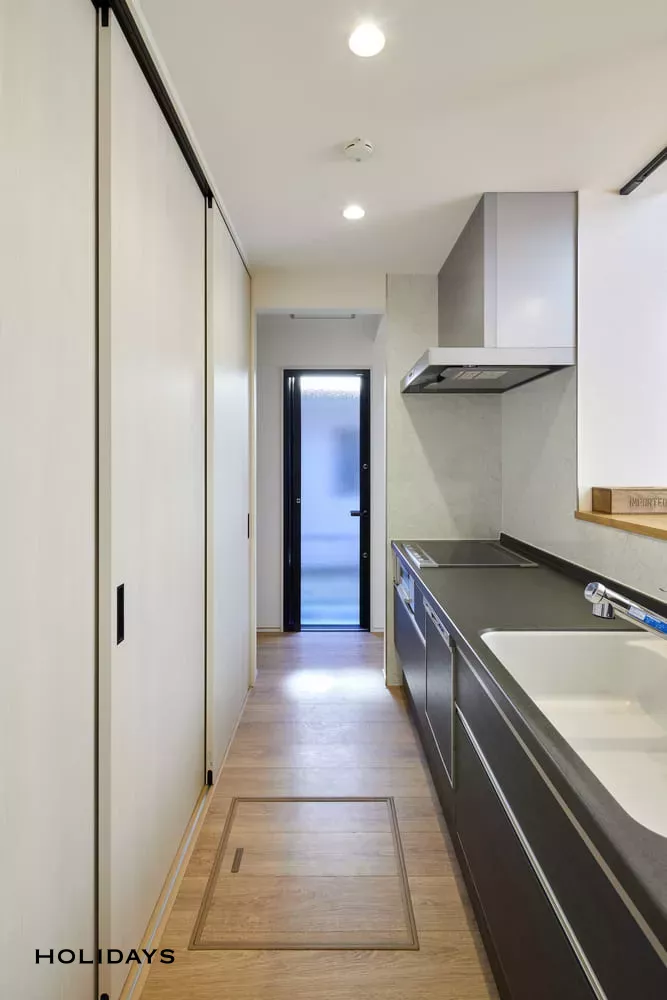 直接キッチンにアクセスできるテラスドアは、荷物の運搬やゴミ出し時に便利